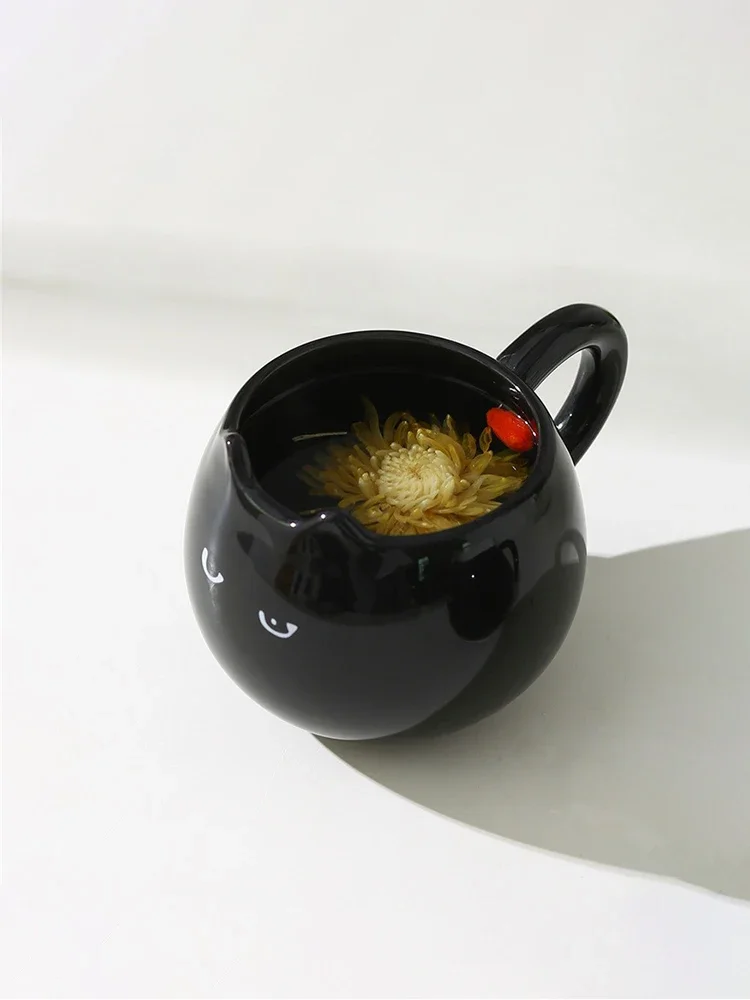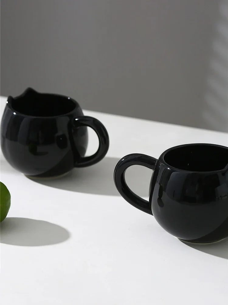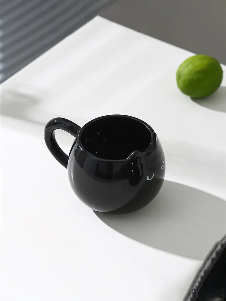 Coffee Mug Office Black Kitten Ceramics Water Cup Creative Hand Painted Breakfast Milk Flower Tea Cups Home Bedroom Water Mug